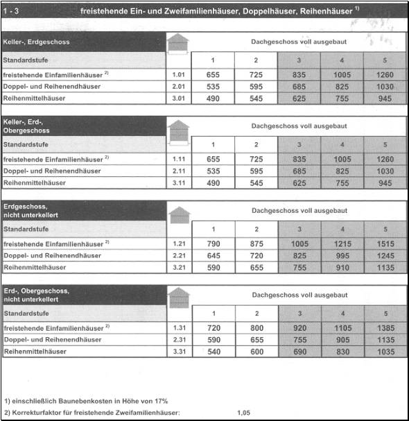 Februar 2020 Mecklenburg-Vorpommern und Februar 2021 Baden-Württemberg geschätzt. SW-RL Anlage 4 Modell zur Ableitung der wirtschaftlichen Restnutzungsdauer für Wohngebäude unter Berücksichtigung von. Kostenkennwerte für die Kostengruppen 300 und 400 in Eurom 2 Brutto-Grundfläche einschließlich Baunebenkosten und Umsatzsteuer.